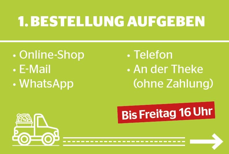 Bestell-Annahmeschluss für das gesamte Wochenende ist jeden Freitag um 16:00 Uhr!